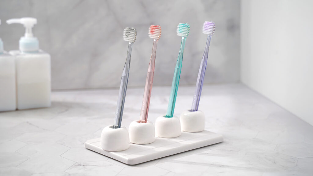 「零失誤淨白寬頭牙刷」為本次系列主打,採用 EBiSU 經典的寬幅刷頭設計,擁有傳統牙刷約兩倍的刷毛孔數,有效提升與牙齒接觸面積。刷毛分為兩種材質:尖端的中硬毛可深入清潔牙齒表面污垢,外側柔軟毛則溫和呵護牙齦與口腔黏膜,兼顧潔淨力與舒適度。